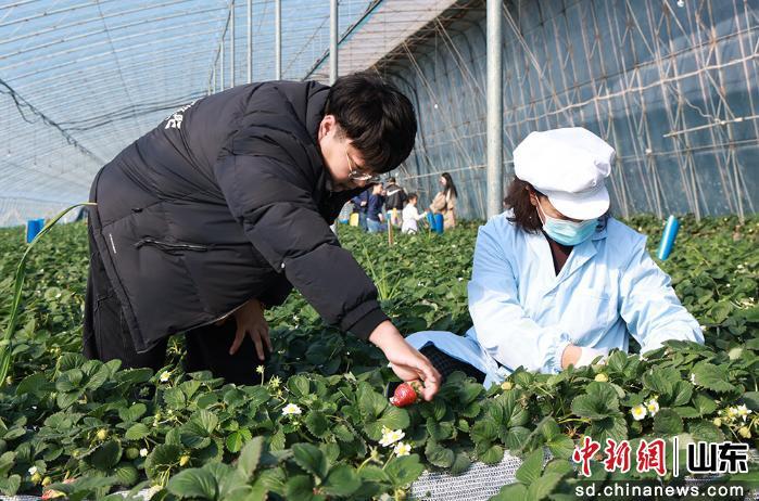 (新春走基層)山東棲霞:草莓“出!敝鍪 鄉(xiāng)村振興添甜意