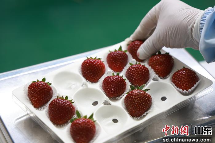 圖為工人在對(duì)草莓進(jìn)行包裝。欒欽程 攝