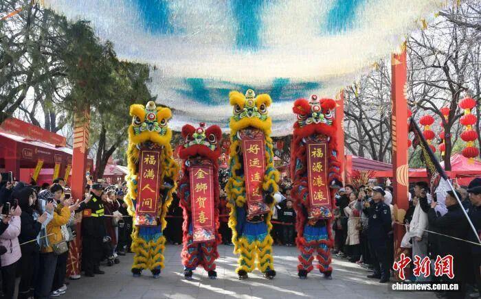 2月17日,濟(jì)南千佛山游園會(huì),游客觀看舞獅表演。張勇 攝