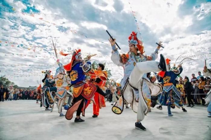 曲阜魯源村“花火魯源?回村過(guò)年”沉浸式體驗(yàn)持續(xù)升溫,“浮光琉璃臺(tái)”上演社火大秀,中幡、英歌舞、川劇變臉、高蹺社火等民俗表演循環(huán)開演。
