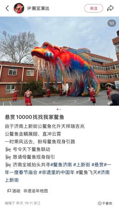 2月20日,負(fù)責(zé)該鰲魚的工作室還發(fā)文“懸賞10000找找我家鰲魚”。