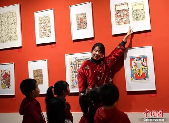 武強(qiáng)年畫博物館,孩子們在看《灶王爺》年畫。蘇小立 攝