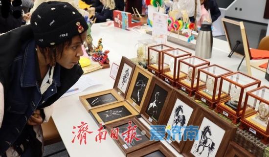 現(xiàn)場還設(shè)有非遺靜態(tài)展示區(qū),濟(jì)南刻瓷的精湛刀工、蛋雕的纖巧細(xì)膩令人贊嘆不已。不少外籍嘉賓在工作人員指導(dǎo)下試穿漢服,在古韻裝扮中拍照留念,真正實現(xiàn)了“沉浸式”文化體驗。