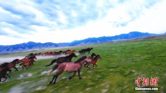 資料圖:奔馳的駿馬,與茵茵綠草、綿延山脈構(gòu)成美好的景致。盛夏時(shí)節(jié),內(nèi)蒙古自治區(qū)阿拉善盟賀蘭山西麓草木蔥蘢。遼闊的山野間,一群駿馬如離弦之箭般掠過綠意盎然的大地,盡顯生命的活力。徐阿楠 攝