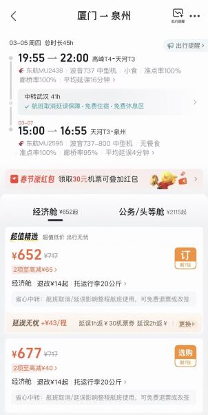 航班提供免費(fèi)住宿等服務(wù) 來(lái)源:在線旅游平臺(tái)