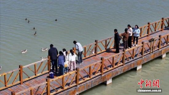春節(jié)期間,游客在東營黃河口生態(tài)旅游區(qū)觀鳥賞景。(黃河口生態(tài)旅游區(qū) 供圖)