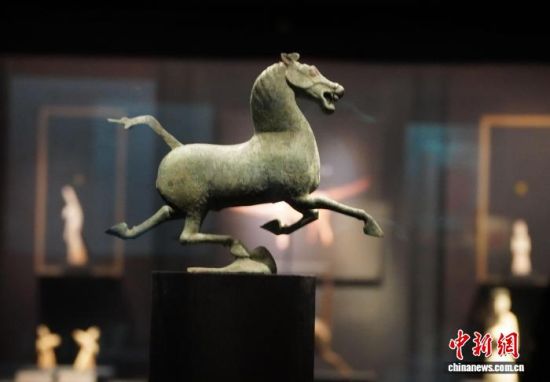 在甘肅省博物館拍攝的銅奔馬(復制品)。中新社記者 艾慶龍 攝