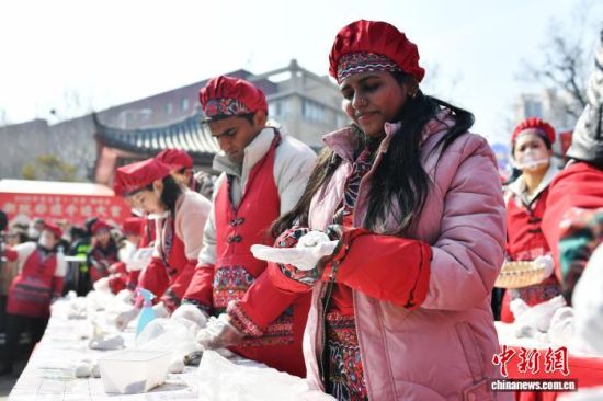 圖為留學(xué)生體驗(yàn)包湯圓。王海濱 攝