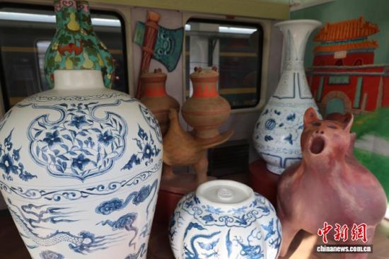 中新網(wǎng)濟南3月4日電(記者 趙曉)“我來自菏澤元代沉船,我個頭很大,有豐富的青花紋飾。論地位,我是青花界的‘大熊貓’,腰部有騰云駕霧龍,肩部有稱心如意紋!3月4日,在“好客山東·齊魯1號”文物研學(xué)主題旅游列車上,菏澤市博物館“鎮(zhèn)館之寶”元青花龍紋梅瓶的趣味“自述”,引往來旅客駐足拍照。