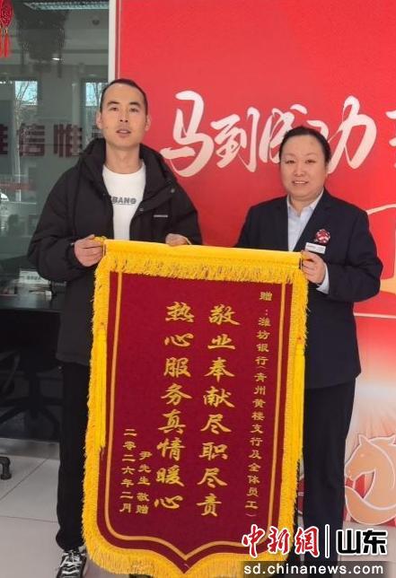 濰坊銀行青州管轄行黃樓支行的員工用實際行動詮釋雷鋒精神。外地客戶尹先生不慎遺落一萬元現(xiàn)金,支行員工發(fā)現(xiàn)后主動聯(lián)系并延時等待其從外地返回領(lǐng)取?蛻粢壬钍芨袆,專程送來印有“敬業(yè)奉獻盡職盡責(zé) 熱情服務(wù)真情暖心”的錦旗致謝。這一暖心舉動不僅展現(xiàn)了濰坊銀行員工的職業(yè)操守,更傳遞了金融服務(wù)的溫度與善意。