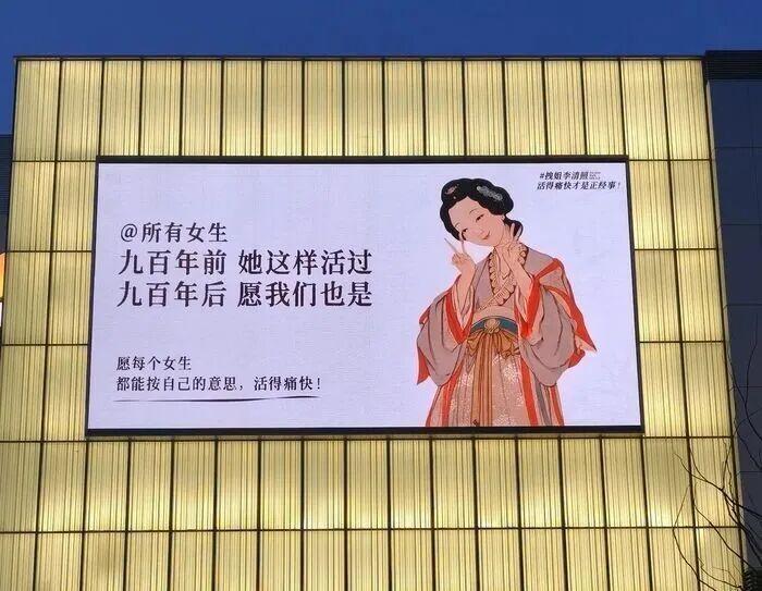 這個(gè)三八婦女節(jié),濟(jì)南一座商場(chǎng)的大屏,被一位900多年前的“山東老鄉(xiāng)”——李清照刷屏了。