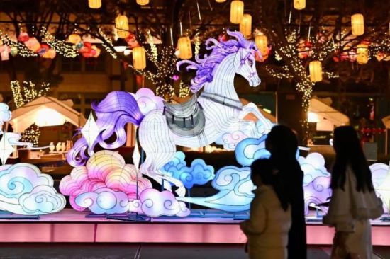 2026年3月2日,福建福州中國船政文化園燈火璀璨,市民紛紛前往參觀正在舉辦的第二十四屆 “兩馬同春鬧元宵” 燈會。圖為馬造型燈組吸人眼球。 中新社記者 王東明 攝