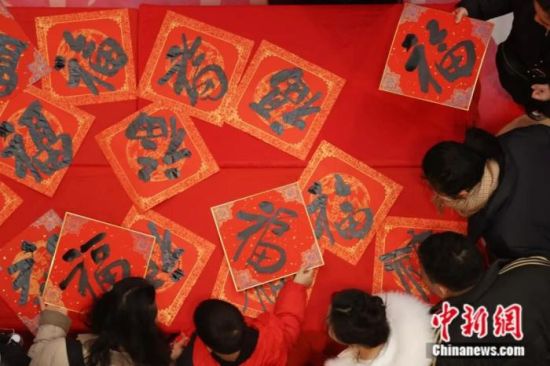 2026年2月6日,江蘇南京,“翰墨迎春·駿馬送福”新春送福進(jìn)園區(qū)書法惠民活動(dòng)在金陵天地?zé)狒[啟幕,書法名家揮毫潑墨,為市民送上新春的美好祝福。中新社記者 泱波 攝