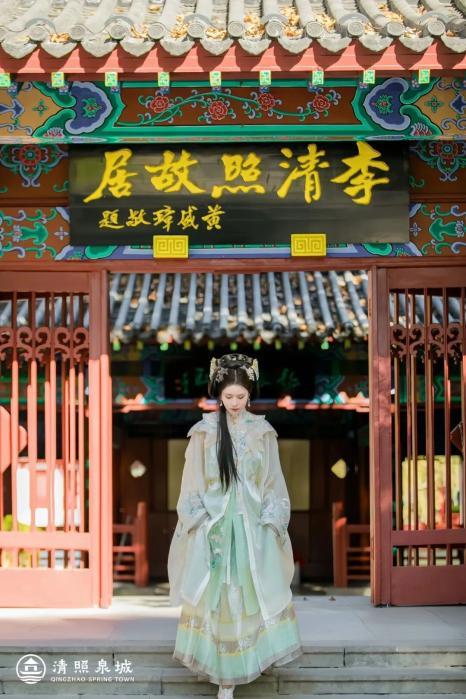 晨霧輕籠時,泉水凝煙,魏晉漢服映著晨露,廊橋臨水而立,自帶電影清韻;暮色四合后,燈火映水,搖櫓輕劃,衣袂翩躚間,恍若穿越千年宋境。孟家大院戲樓、鴻升布坊、李清照故居等點(diǎn)位,皆是出片勝地。