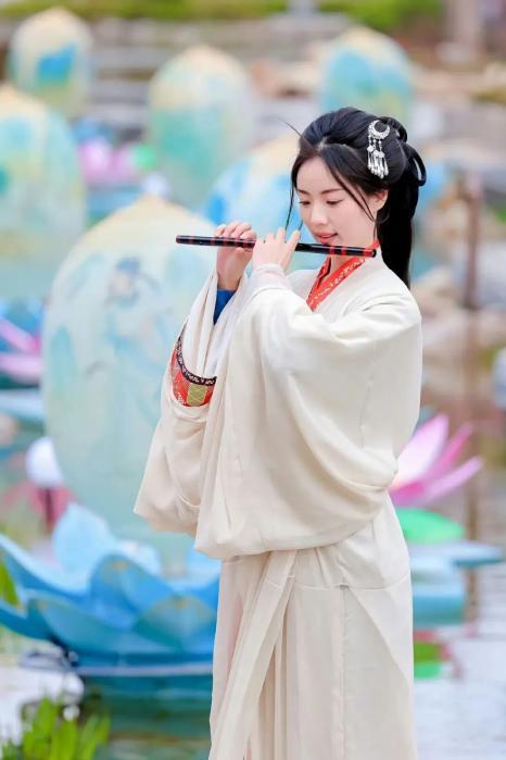 素雅漢服襯著玉色水花,觀瀾亭前的側(cè)影靈動仙氣,李清照紀(jì)念堂的紅柱回廊間,明制漢服與文人風(fēng)雅相融,四季皆景,張張皆是工筆國畫質(zhì)感。
