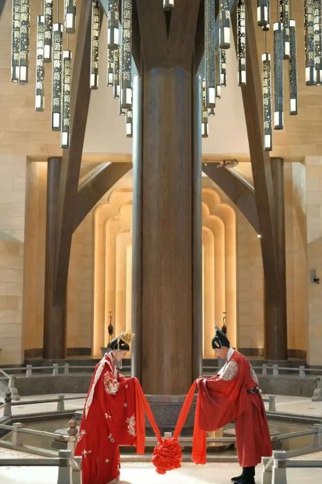儒風(fēng)浸潤,禮樂傳情。尼山圣境內(nèi),72米孔子像巍然矗立,大學(xué)堂雕梁畫棟,將儒家美學(xué)與中式禮樂完美融合。