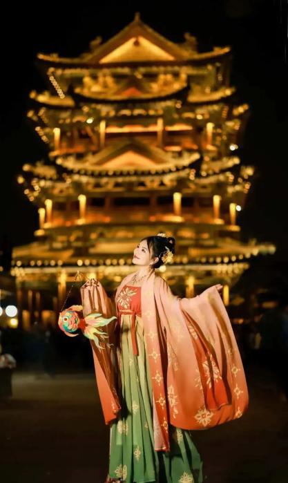 白日里,宋風(fēng)漢服襯著雅致建筑,溫柔文藝;夜幕下,燈火流光溢彩,飄逸漢服與燈籠光影交織,裙擺飛揚(yáng)間,彰顯大宋盛世的驚艷與浪漫。