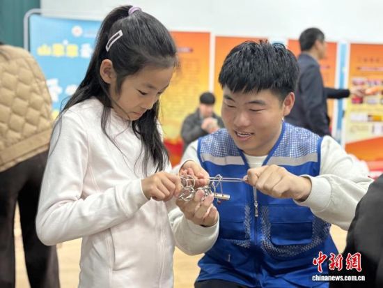 圖為志愿者協(xié)助參加活動(dòng)的小朋友解開九連環(huán)。高藝芯 攝