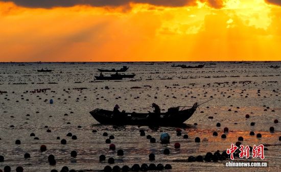 山東榮成:鮑魚養(yǎng)殖工人披朝霞耕海牧漁