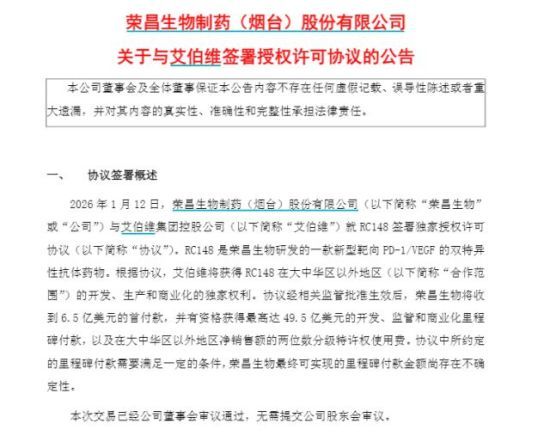 里程碑付款最高49.5億美元 榮昌生物宣布就藥物RC148牽手艾伯維