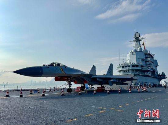 7月4日,山東艦舉行開(kāi)放參觀活動(dòng)。據(jù)了解,由中國(guó)人民解放軍海軍航空母艦山東艦,導(dǎo)彈驅(qū)逐艦延安艦、湛江艦及導(dǎo)彈護(hù)衛(wèi)艦運(yùn)城艦組成的航母編隊(duì)抵達(dá)香港,開(kāi)啟為期5天的訪問(wèn)活動(dòng)。圖為一架殲-15艦載機(jī)停放在起飛位,向公眾開(kāi)放參觀。圖為香港制服團(tuán)體成員與一位山東艦士兵、殲-15T艦載機(jī)合影。
