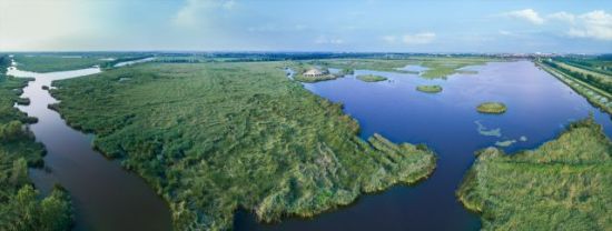 姜山濕地鳥瞰圖。(無人機(jī)照片)萊西市委宣傳部供圖