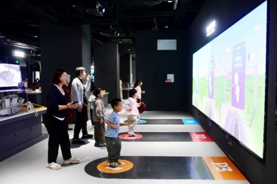 家長帶兒童在館內(nèi)體驗(yàn)互動游戲。崔冬妮 攝