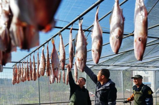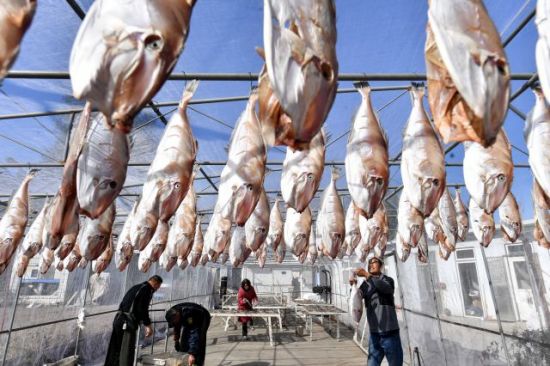 時(shí)值秋冬交替,在山東省青島市城陽(yáng)區(qū)上馬街道東程社區(qū),當(dāng)?shù)貍鹘y(tǒng)特色的“一鹵鮮”風(fēng)味魚(yú)干進(jìn)入最佳晾曬時(shí)期,漁民通過(guò)“選、割、鹵、曬”四道工序加快生產(chǎn),經(jīng)市場(chǎng)預(yù)定和電商+直播銷往各地,促進(jìn)增收。