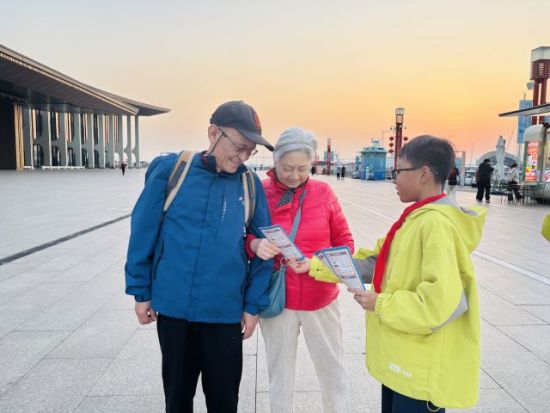 “剛開始有點害羞,可一想到能幫大家避開騙局,就立刻鼓起勇氣!”一個個小志愿者捧著反詐宣傳單頁,眼神堅定地向游客講解。他們的身影穿梭在景區(qū)的棧道與廣場上,胸前的紅領(lǐng)巾在陽光下格外鮮艷。一份份宣傳單頁承載著平安心愿,一聲聲講解稚嫩卻有力,這群小小的“反詐衛(wèi)士”,成了奧帆中心最動人的“平安風(fēng)景線”。不少游客駐足傾聽,聽完后紛紛豎起大拇指:“孩子們的提醒特別親切,記在心里更牢!”