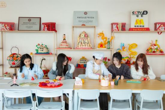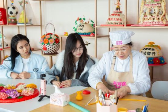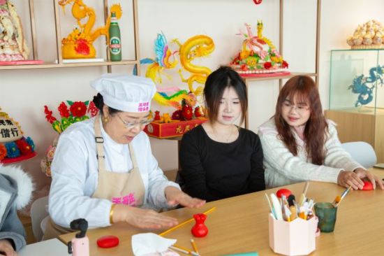 外國(guó)友人在傳承人指導(dǎo)下體驗(yàn)面塑技藝。謝順偉 攝