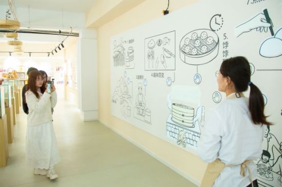 外國(guó)友人在講解員的指引下了解王哥莊大饅頭制作過(guò)程。謝順偉 攝