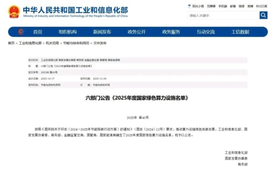 近日,工業(yè)和信息化部、國(guó)家發(fā)展改革委、國(guó)家能源局等六部門公布了《2025年度國(guó)家綠色算力設(shè)施名單》,共有60個(gè)項(xiàng)目上榜,其中,工業(yè)領(lǐng)域1個(gè),信息通信領(lǐng)域26個(gè),能源領(lǐng)域2個(gè),互聯(lián)網(wǎng)領(lǐng)域17個(gè),金融領(lǐng)域4個(gè),公共機(jī)構(gòu)領(lǐng)域10個(gè)。