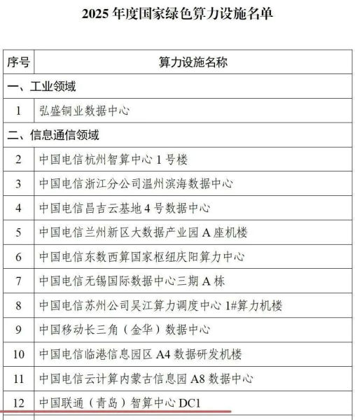 中國(guó)聯(lián)通(青島)智算中心DC1入選!2025國(guó)家綠色算力設(shè)施名單公布