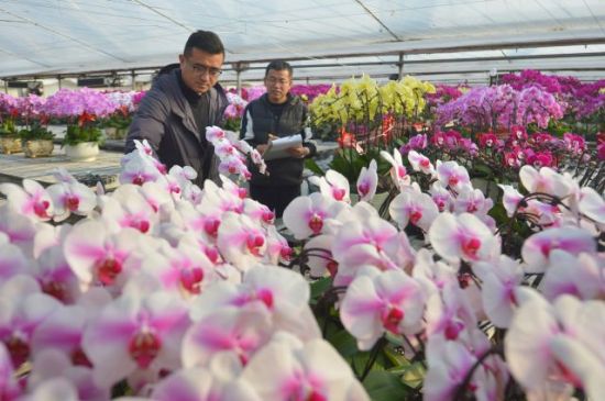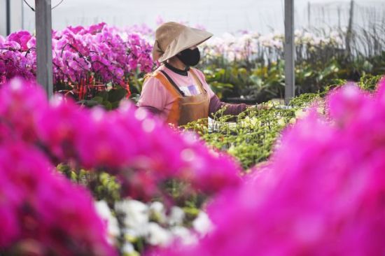 1月27日,花農(nóng)在搬運(yùn)客戶定制的蝴蝶蘭。王海濱 攝