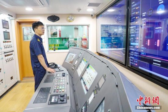 6月26日,輪機(jī)長(zhǎng)在“氫電拖1”輪集中控制室進(jìn)行調(diào)試。當(dāng)日,中國(guó)首艘氫電拖輪“氫電拖1”輪26日在山東港口青島港投用。據(jù)測(cè)算,較傳統(tǒng)燃油拖輪,該輪預(yù)計(jì)每年可減少二氧化碳排放量達(dá)1500余噸,標(biāo)志著中國(guó)在氫能船舶應(yīng)用領(lǐng)域?qū)崿F(xiàn)突破。張進(jìn)剛 攝