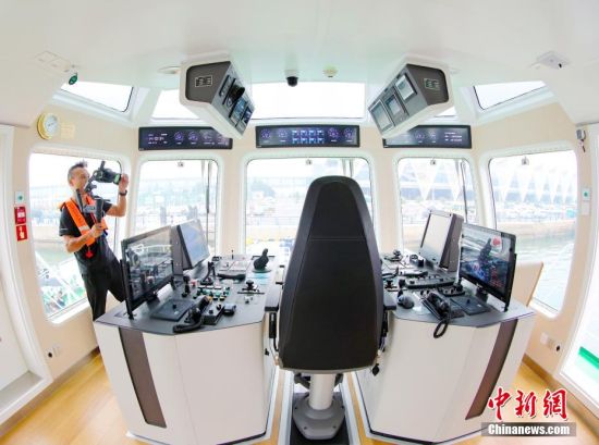 6月26日,攝影師拍攝“氫電拖1”輪駕駛室。當(dāng)日,中國(guó)首艘氫電拖輪“氫電拖1”輪26日在山東港口青島港投用。據(jù)測(cè)算,較傳統(tǒng)燃油拖輪,該輪預(yù)計(jì)每年可減少二氧化碳排放量達(dá)1500余噸,標(biāo)志著中國(guó)在氫能船舶應(yīng)用領(lǐng)域?qū)崿F(xiàn)突破。張進(jìn)剛 攝
